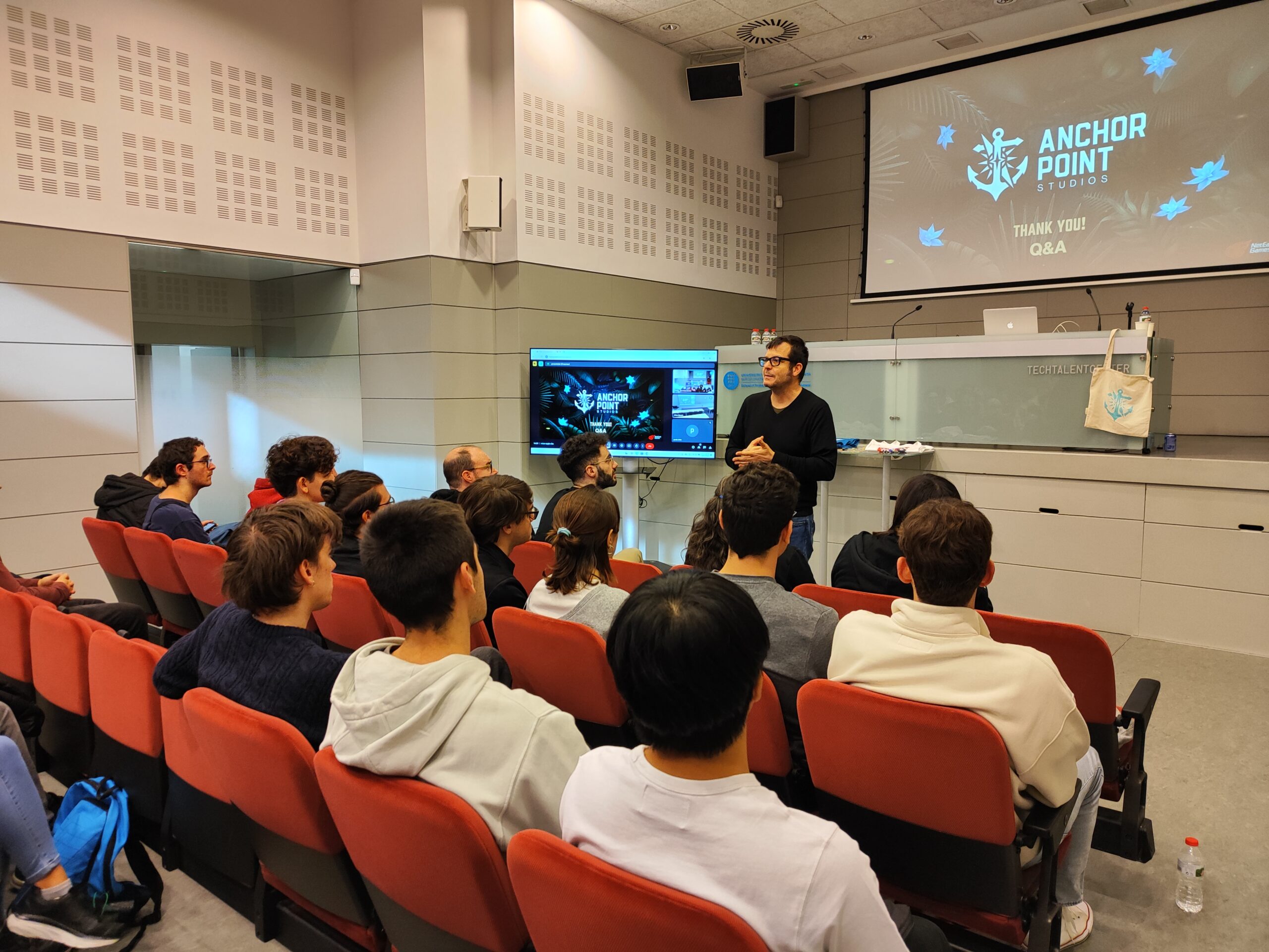 El pasado 27 de noviembre, el estudio de videojuegos Anchor Point Studios compartió una sesión exclusiva con el estudiantado del Centro de la Imagen y la Tecnología Multimedia (CITM). Este encuentro permitió a los estudiantes conocer de cerca a una de las empresas más destacadas del sector de los videojuegos, con sede en Barcelona, y entender mejor las nuevas oportunidades de prácticas y de inserción profesional que les ofrece.