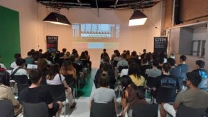 En la presentación intervinieron el director del Centro, Carles Sora, y la jefa de estudios, Bea Martínez. También tuvo un papel destacado la participación de la delegación de estudiantes del Centro, que animó al nuevo alumnado a formar parte de todas las actividades que organizan: concursos, encuentros, talleres y la tradicional game jam.
